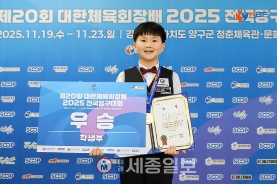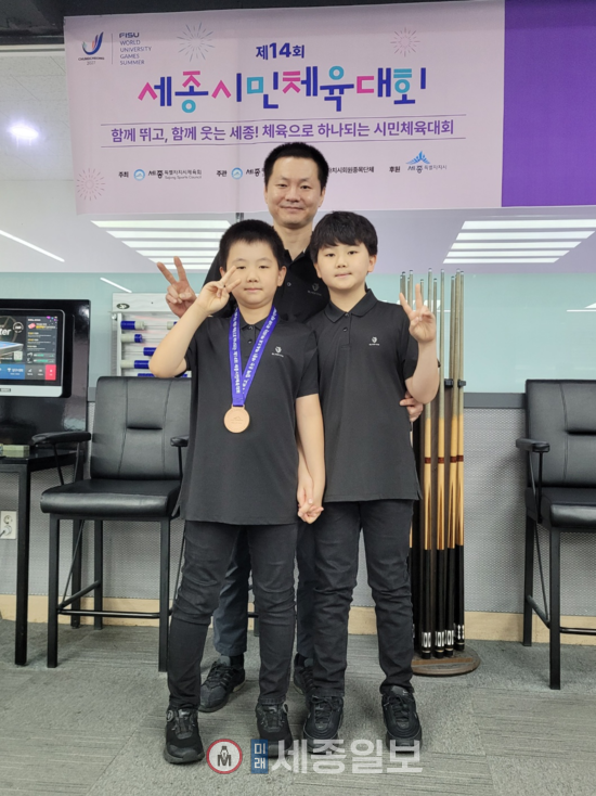 [미래세종일보] 박승철 기자=제20회 대한체육회장배 2025 전국당구대회가 지난 19일부터 23일까지 5일간 강원도 양구군 청춘제육관에서 개최된 가운데 초등부 우승(금메달)과 준우승(은메달)을 세종시 참샘초 송정후(5학년)·송정원(4학년) 형제가 획득해 당구의 천재성 인정과 함께 세종시를 빛낸 인물로 관심을 끌고 있다.